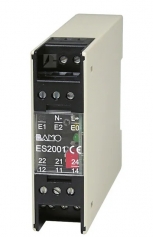All Reed contacts suffer of inductive or capacitive charge due to starting pumps or motors, leading to early aging and malfunction. A solution is to protect Reed contacts with a relay amplifier, to insure greater switching power and lifetime. ES 2001 amplifies commutation signals on low current and low voltage detection loops, e.g. by use of Reed contacts. Mounting: on DIN rail for easy integration in industrial cabinets. On the front a LED displays the output relay status. This relay ES 2001 is also perfect for liquid detection or liquid level regulation (documentation 530-01). Each relay allows a regulation between two trigger points. For instance to fill in or emptying a tank by automation of a pump (or a valve). Each relay has 2 outputs change over contacts, potential free to allow driving for example, a power loop or an automate. |