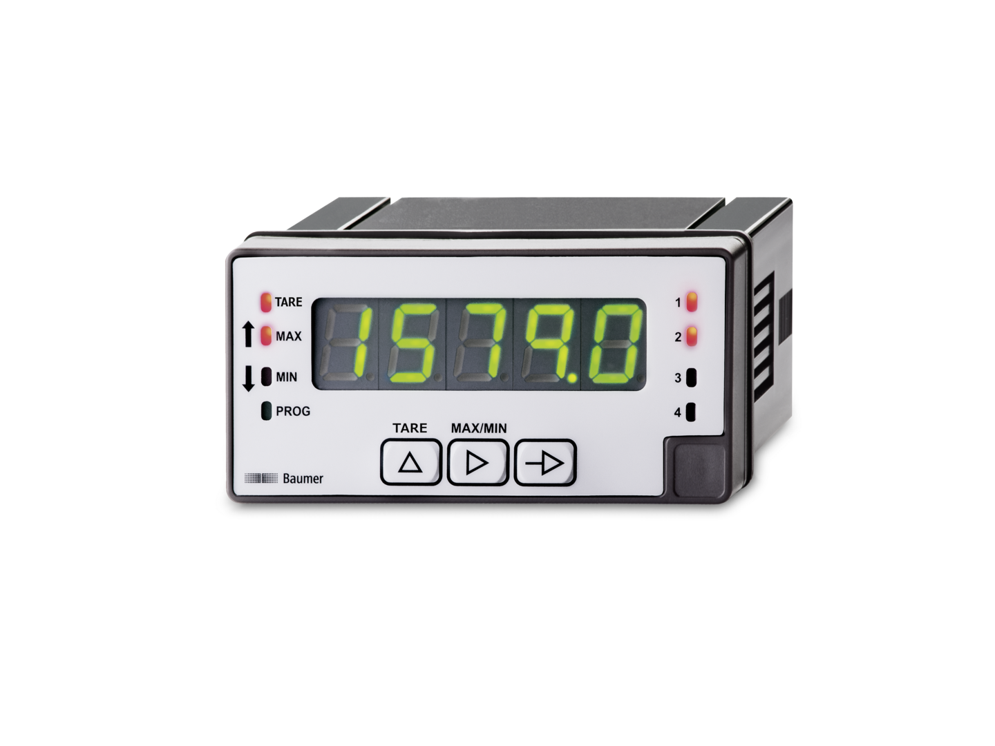 Display for standard signals, temperature, strain gauge, with 2 limits. For voltage ±10 V or current ±20 mA. For thermocouples J, K, T, N, Pt100. For weight, pressure, torsion, strain, potentiometer. Programmable characteristic curve with 11 control points. Three control inputs, programmable. Display stabilization filter. LED display, 5-digits, 3 colors, programmable, tare, Min, Max functions. With 2 relays and analog output 0...10V. DIN housing 96 x 48 mm. Manufactured part numbers open, use the search ctrl + F
